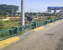 تقوم ادارة الحدائق بحى وسط برفع كفاءة المسطحات الخضراء الجزر الوسطي بطريق الحرية