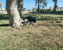 تقوم ادارة الحدائق بحى وسط برفع كفاءة المسطحات الخضراء الجزر الوسطي بالكورنيش