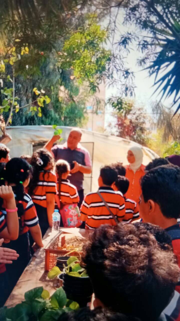 مرافقة طلبة الصف السادس الإبتدائي بالمدرسة الإنجليزية والتوجه إلى زيارة الصوبة الزراعية بإدارة المعمورة الزراعية التابعة للإدارة المركزية للتشجير والبيئة