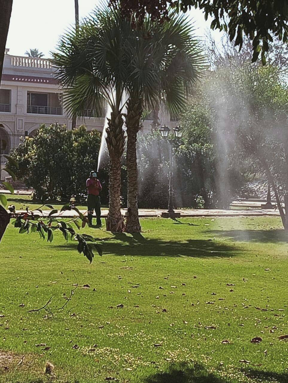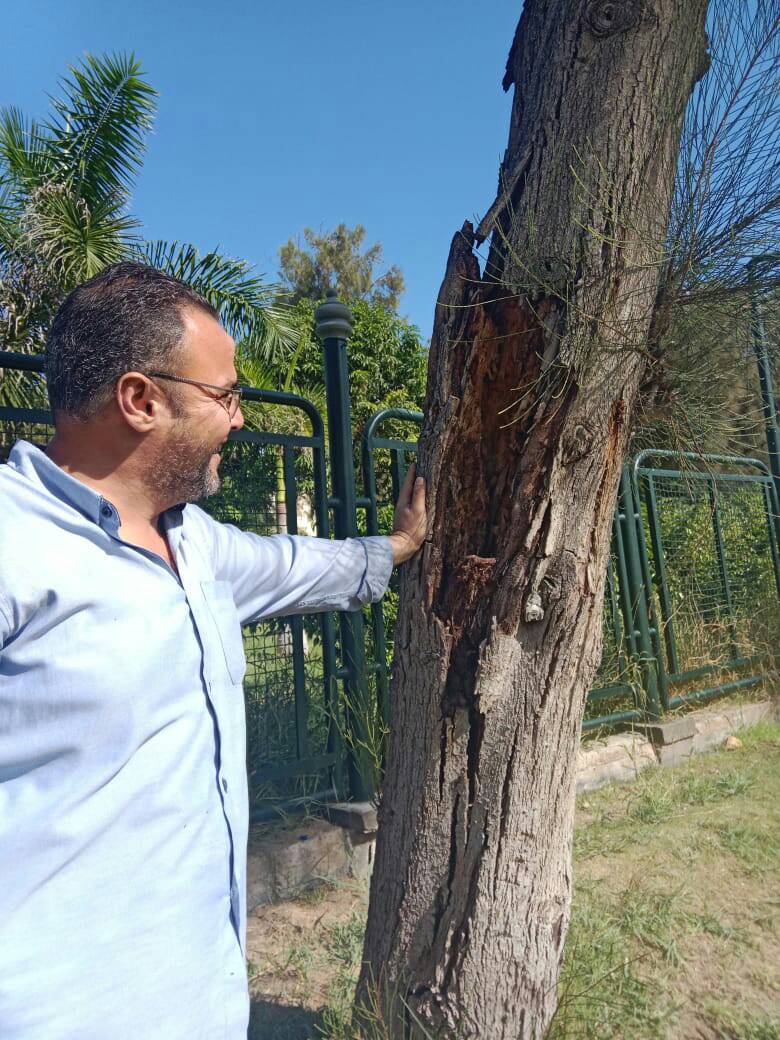 المرور الدوري والإشراف ومتابعة فحص ورش النخيل بحدائق أنطونيادس ضد الإصابة بحشرة سوسة النخيل الحمراء .