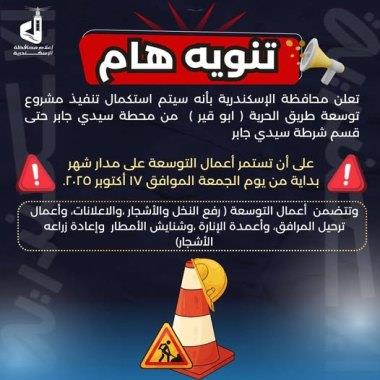 سيتم استكمال تنفيذ مشروع توسعة طريق الحرية ( ابو قير )؛