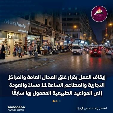 إيقاف العمل بقرار غلق المحال العامة والمراكز التجارية والمطاعم فى تمام الساعة 11م