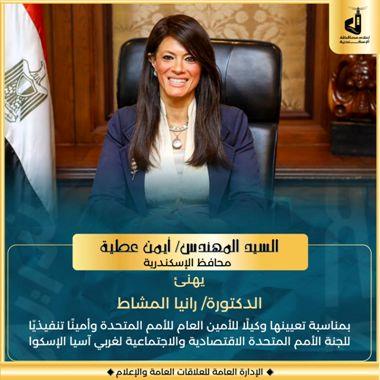 تقدم المهندس أيمن عطية محافظ الإسكندرية بخالص التهنئة إلى الدكتورة رانيا المشاط،