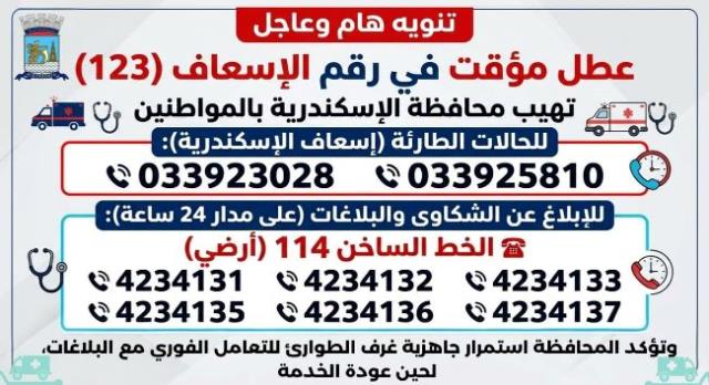 تنويه هام بشأن عطل مؤقت في الاتصال برقم الإسعاف (123)