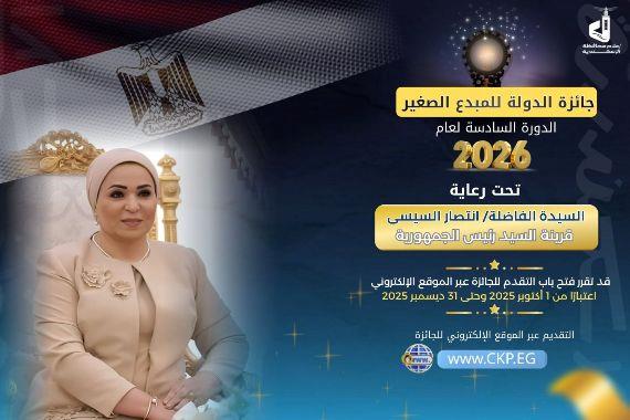تحت رعاية السيدة الفاضلة/ انتصار السيسي قرينة السيد رئيس الجمهورية تعرف على طريقة التقديم لجائزة الدولة للمبدع الصغير في دورتها السادسة لعام 2026