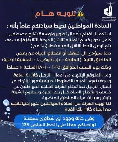 تنويه هام بشأن ضعف او انقطاع المياه