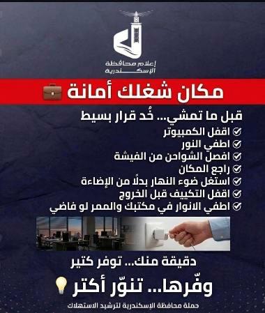لليوم السادس على التوالي… تواصل محافظة الإسكندرية نشر ثقافة ترشيد استهلاك الطاقة