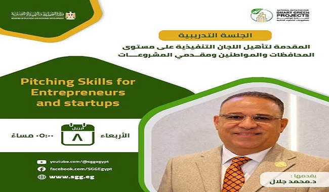 جلسة تدريبية جديدة بعنوان :Pitching Skills for Entrepreneurs and startups ▪️يقدمها د. محمد جلال يوم الأربعاء 8 أبريل 2026، الساعة 5 مساء