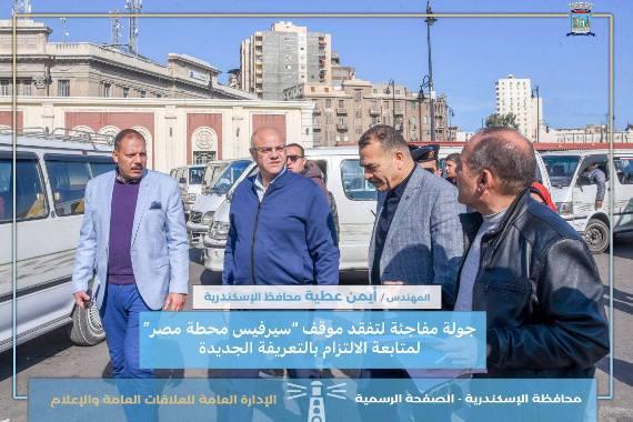 محافظ الإسكندرية في جولة مفاجئة لتفقد موقف سيرفيس محطة مصر لمتابعة الالتزام بالتعريفة الجديدة