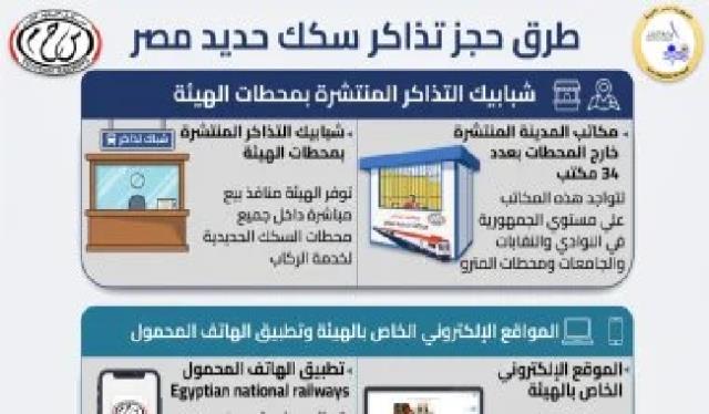 | وزارة النقل تعلن خريطة حجز تذاكر السكك الحديدية: 7 طرق للتيسير على الركاب وذلك في إطار خطة التحديث الشاملة التي تشهدها قطاعات وزارة النقل لتقديم أعلى مستويات الخدمة الخميس, 05 مارس, 2026