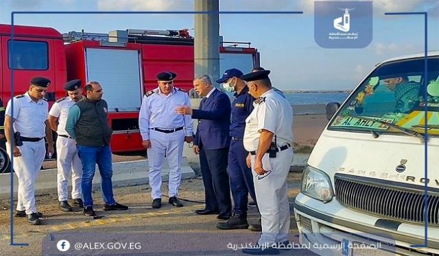 محافظ_الإسكندرية يتفقد موقع حادث اشتعال سيارة بمحور المشير أبو ذكرى