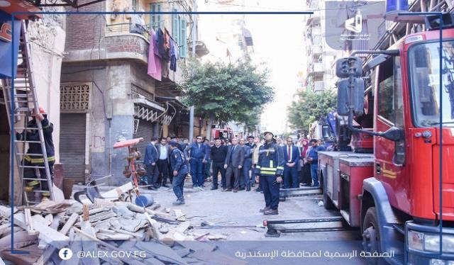 توجه الفريق محافظ الإسكندرية، صباح اليوم، لمتابعة تداعيات انهيار العقار الكائن نطاق حي غرب