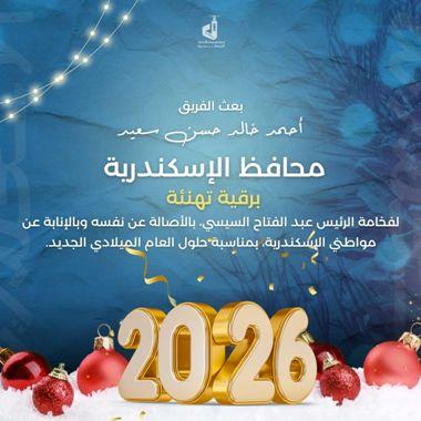 بعث الفريق أحمد خالد حسن سعيد محافظ الإسكندرية، برقية تهنئة إلى فخامة الرئيس عبد الفتاح السيسي، رئيس الجمهورية، بالأصالة عن نفسه وبالإنابة عن مواطني الإسكندرية؛ وذلك بمناسبة حلول العام الميلادي الجديد ٢٠٢٦، داعياً المولى -عز وجل- أن يعيد هذه المناسبة المجيدة على فخامته بموفور الصحة ودوام التوفيق، وعلى مصرنا الغالية بالخير واليمن والبركات. 🔻وأعرب الفريق أحمد خالد عن أصدق أمنياته للشعب المصري العظيم وبصفة خاصة أبناء محافظة الإسكندرية، بأن يكون العام الجديد عاماً للرخاء والنماء، يستكمل فيه الوطن مسيرة البناء والتنمية تحت القيادة الحكيمة لفخامة رئيس الجمهورية. 🔻وأكد المحافظ أن الإسكندرية تستقبل العام الجديد بعزيمة صلبة لمواصلة العمل والاجتهاد، داعياً الله أن تنعم مصرنا وسائر بلاد العالم بالسلام والمحبة، وأن يحفظ وطننا من كل سوء، ويوفق خطى قيادتنا دائماً لما فيه خير البلاد والعباد.