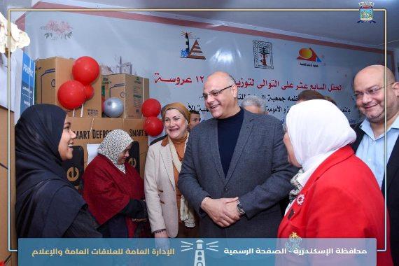 شهد المهندس أيمن عطية محافظ الإسكندرية، والدكتورة سحر السنباطي رئيس المجلس القومي للطفولة والأمومة، احتفالية جمعية الريادة للتنمية لتجهيز 120 عريس وعروسة